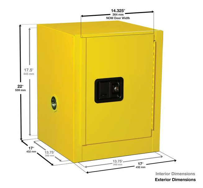 Justrite 8902001 Manuel Kapatmalı Aerosoller için Mini Taşınabilir Yanıcı Dolabı
