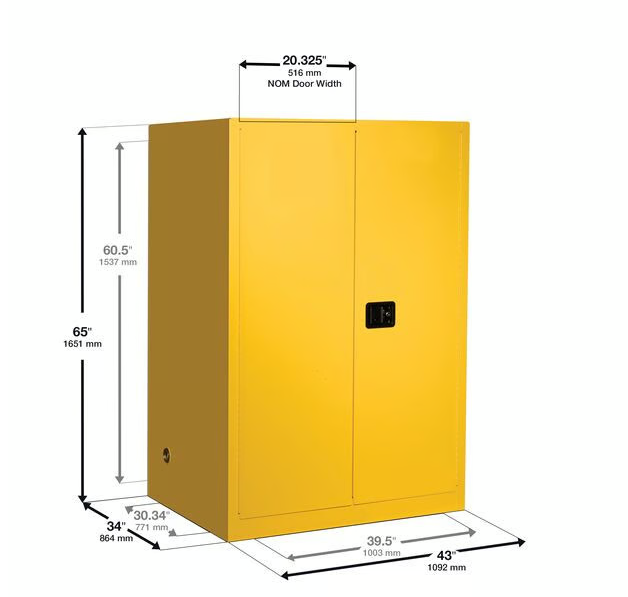 • Endüstriyel ürünlerin önde gelen gelen nedenlerinden biri yanıcı sıvıların uygun olmayan şekilde ortaya çıkması ve ortaya çıkmasıdır. Justrite Standart Sure-Grip® EX Kendiliğinden Kapanan Kapılara sahip Yanıcı Güvenlik Dolabı (model 899020), yanıcı sıvıları güvenli bir şekilde depolamak için tasarlanmıştır.