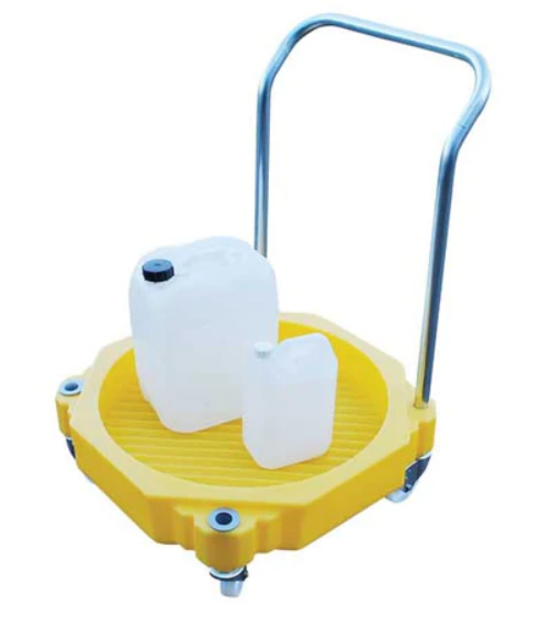 • İki elli çelik saplı bu sağlam ama hafif polietilen arabayı kullanarak 205 litrelik varilleri, küçük kapları veya kutuları sahanızda kolayca taşıyın. Dört tekerlek (ikisi kilitlenebilir) stabilite sağlar ve 30 litrelik karter her türlü sızıntı ve dökülmeyi kontrol altına alır.