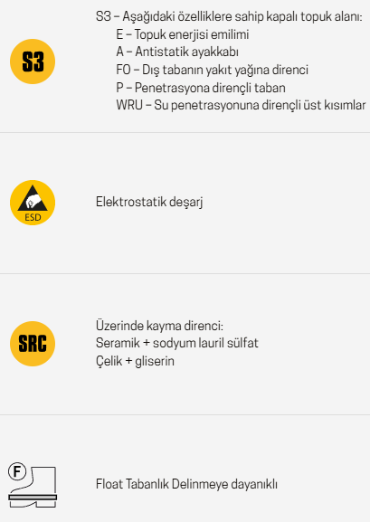 S3 güvenlik sertifikasına sahip olan bu iş ayakkabıları, çelik burunlu ve kaymaz tabanlıdır, böylece işçilerin ayaklarını maksimum koruma altında tutar. Ayrıca, elektrostatik deşarjı (ESD) önlemek için özel olarak tasarlanmıştır, bu da endüstriyel ortamlarda güvenliği artırır.